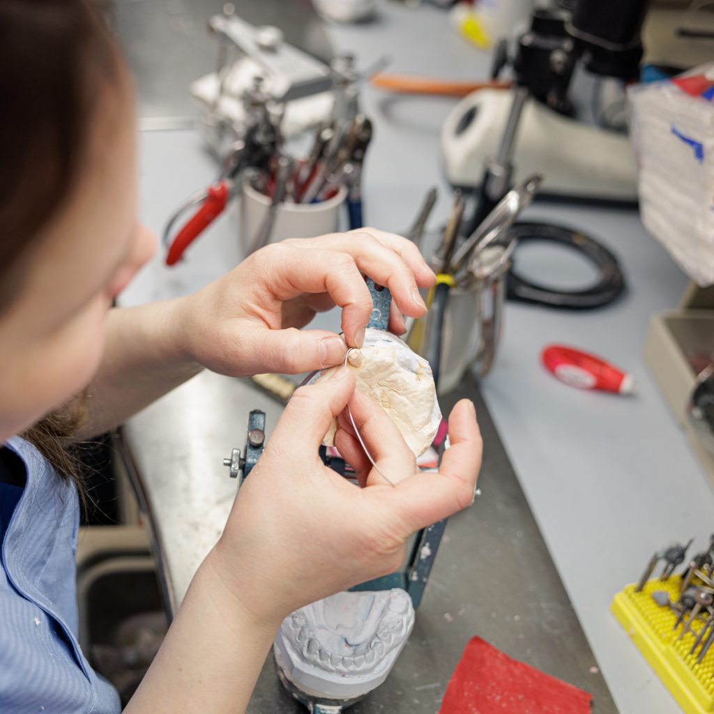 Kuvasimme henkilökuvia työn äärellä sekä somekuvia tekevistä käsistä. Hammaslaboratorion tekeminen on jotenkin tosi kiinnostavaa kuvattavaa, kuten kaikki käsityö muutenkin. Kannattaa panostaa somekuviin. Esimerkiksi kuvasarja neljä kertaa vuodessa auttaa tosi paljon somesisällön tuottamisessa. Samalla kerrytät mukavaa kuvapankkia yrityksellesi.